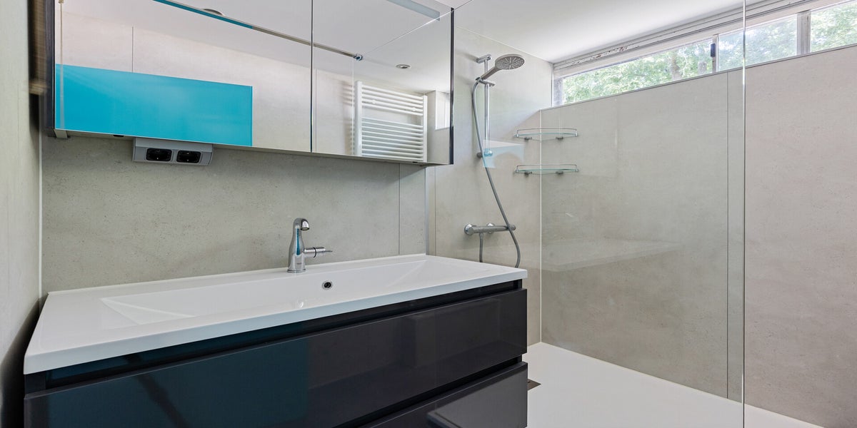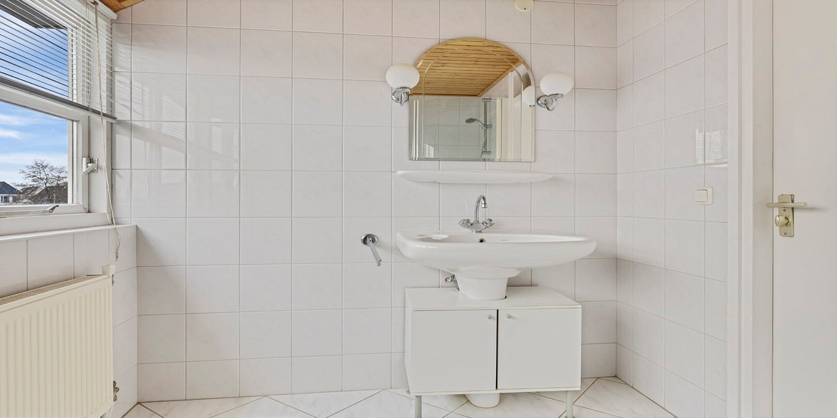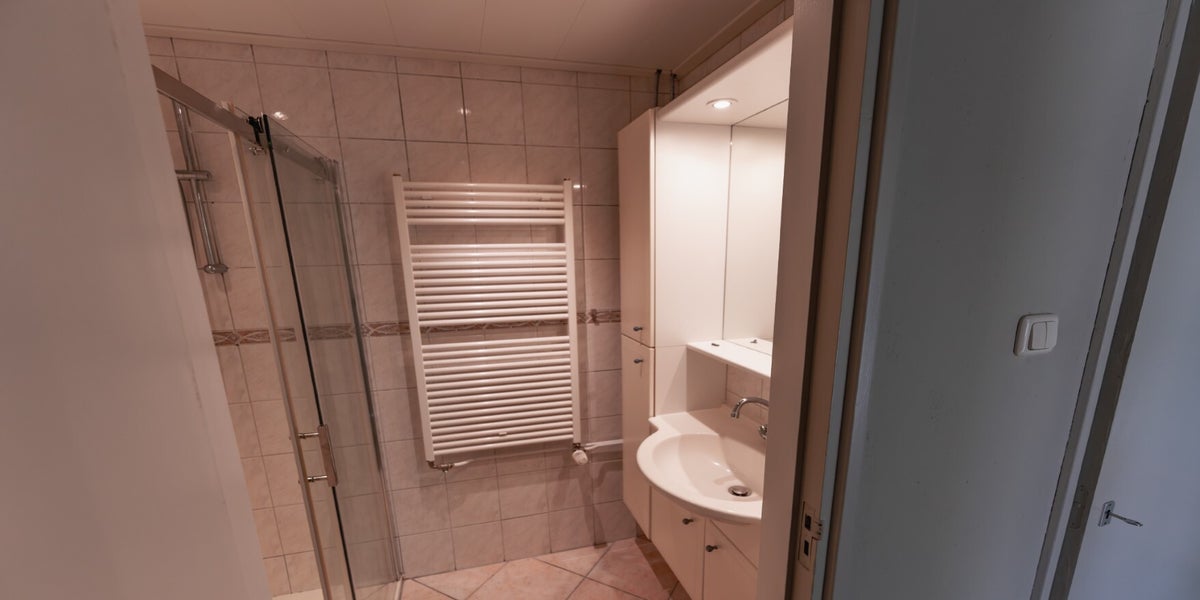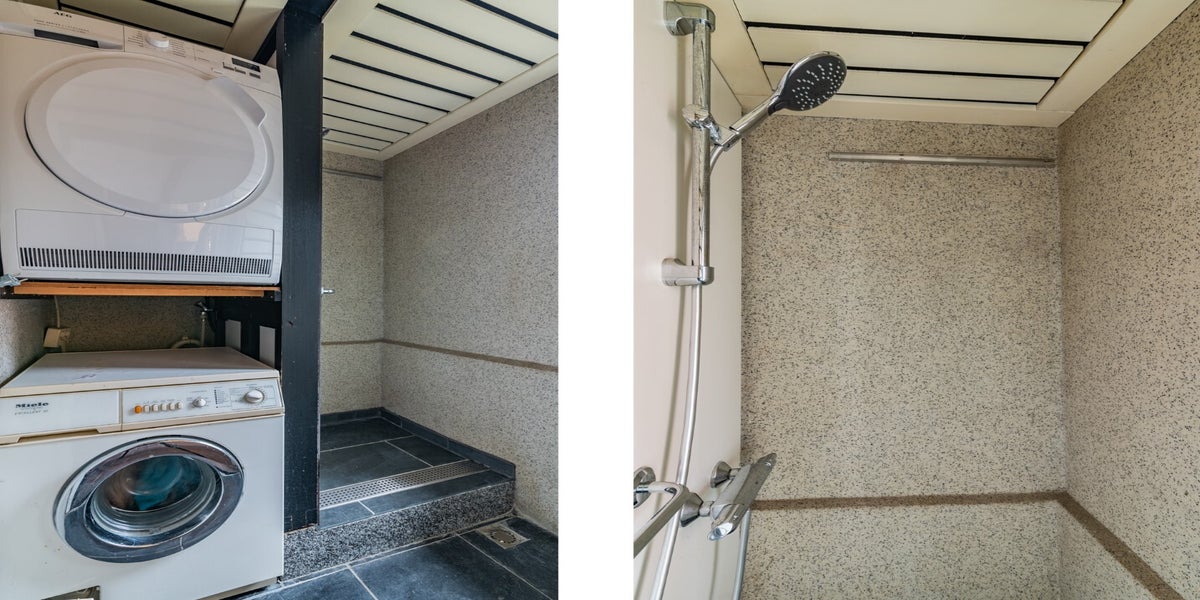 douche, waar ook de wasmachine en droger geplaatst zijn. In de bijkeuken is eveneens de cv-ketel geplaatst en is ruimte voorbereid voor het plaatsen van een warmtepomp.