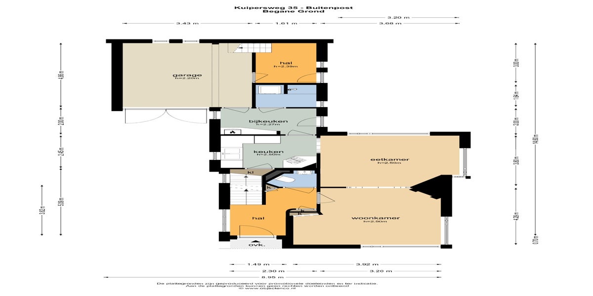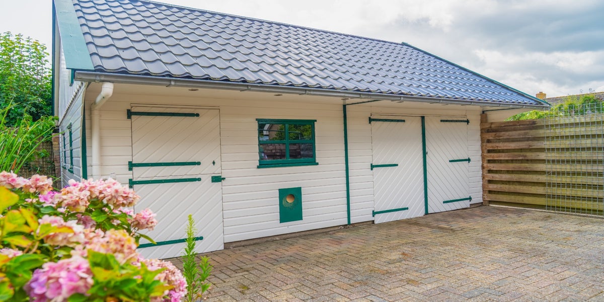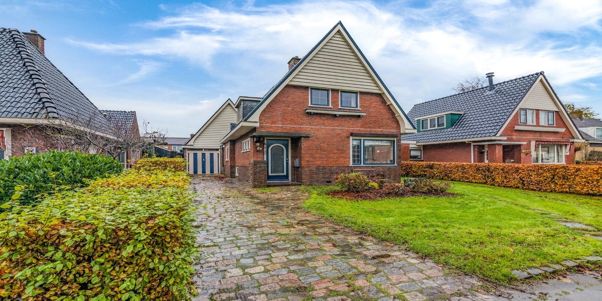 Vrijstaand woonhuis met een aangebouwde berging en aangebouwde garage.