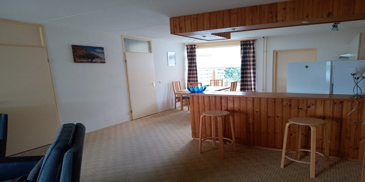 open keuken. De keuken heeft een 4 pits kookplaat, een afzuigkap, een vriezer en koelkast en een