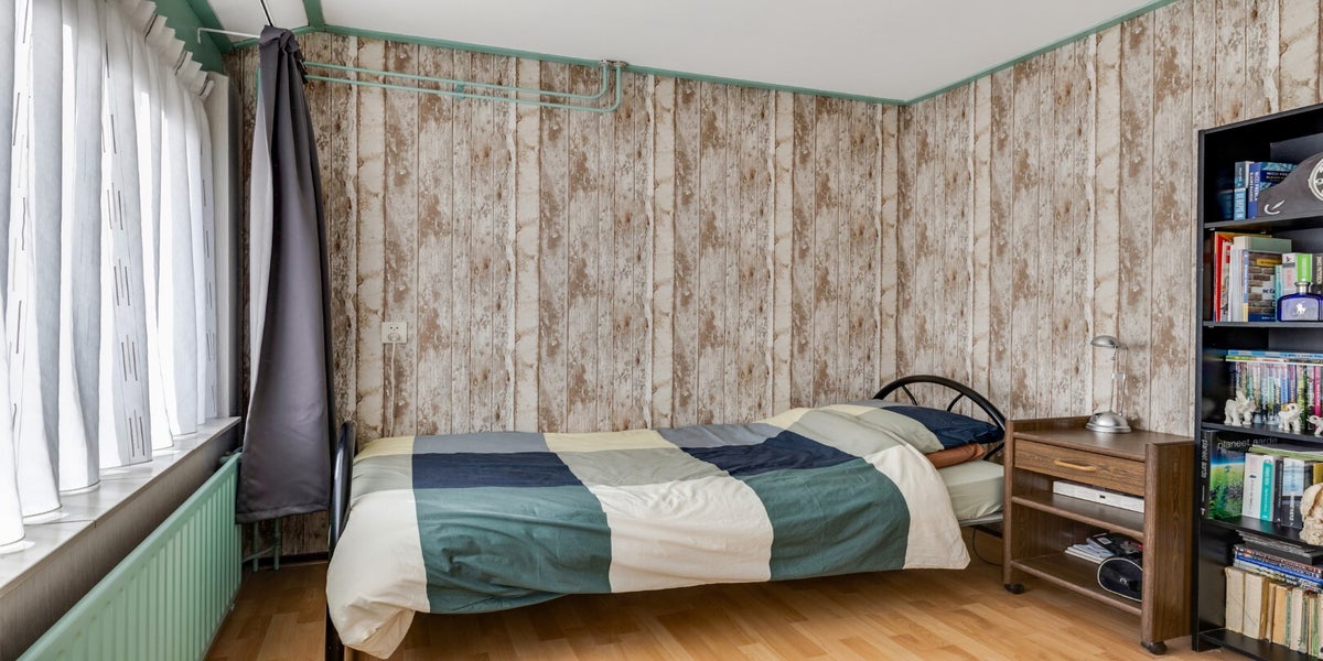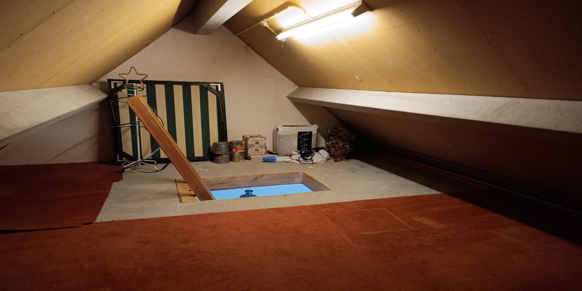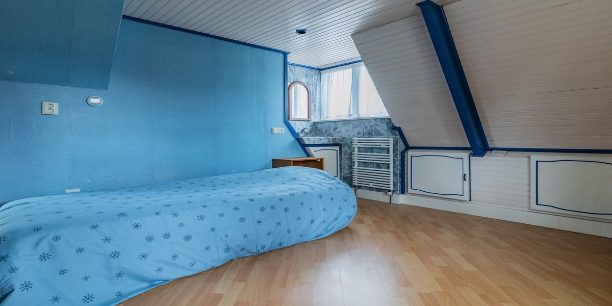 Slaapkamer (ca 12 m2) en de zolderberging met de cv-opstelling