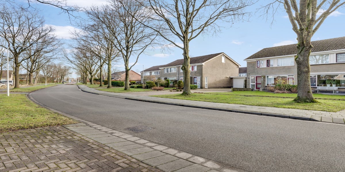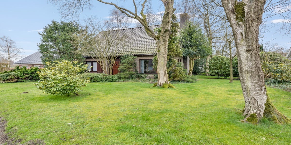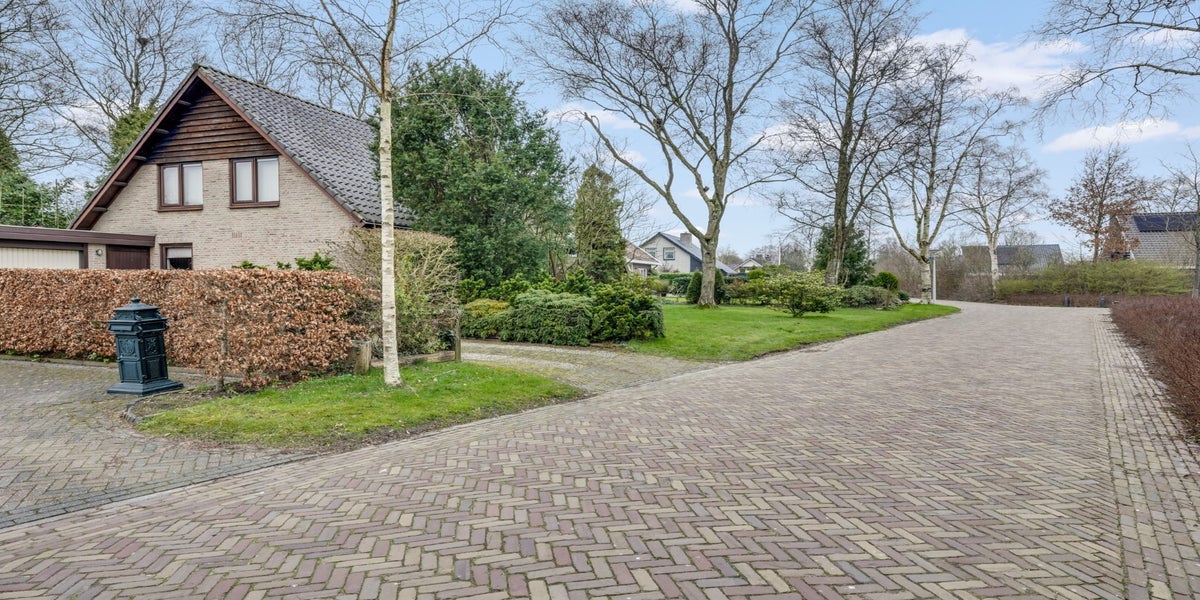 Het huis is op een ruime kavel gelegen en is omgeven door veel groen, bomen en vrijstaande woningen.