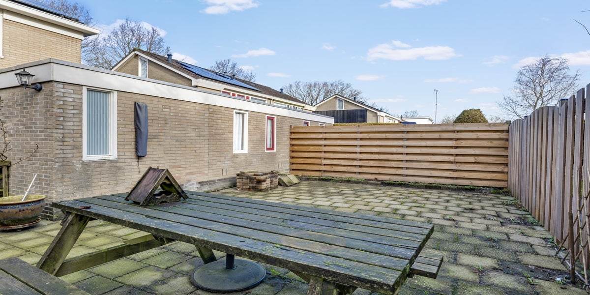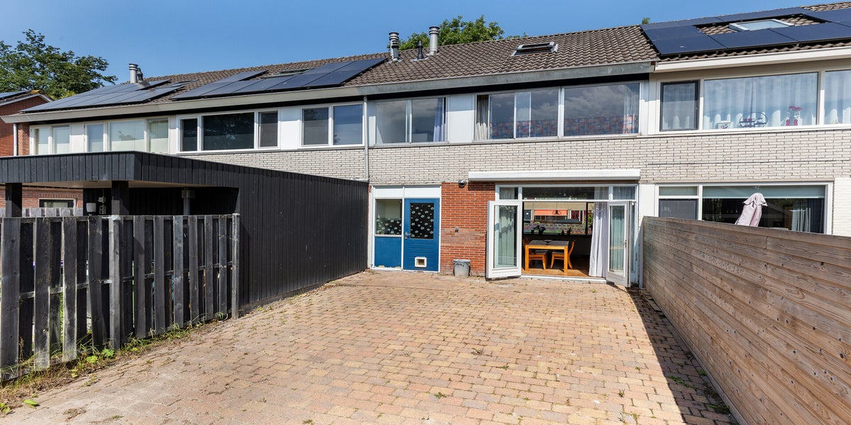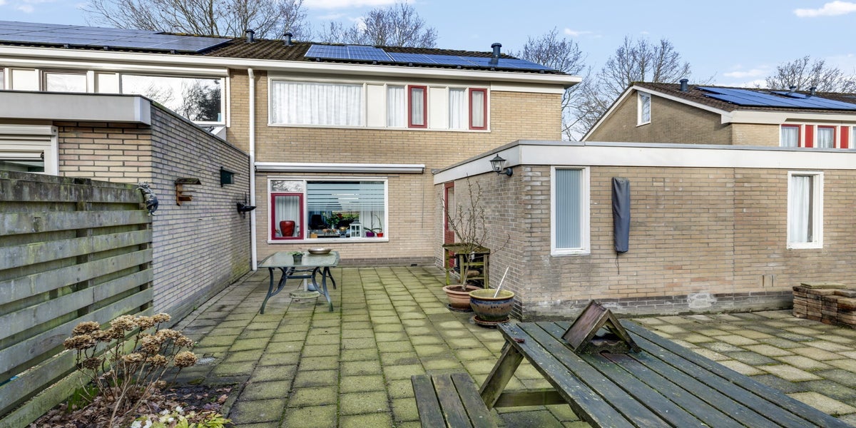 achterom. Deze tussenwoning staat op een kavel van 162 m2 met een de achtertuin op het zuiden.