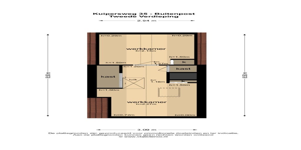 Tweede verdieping: slaap/werkkamer en bergzolder.