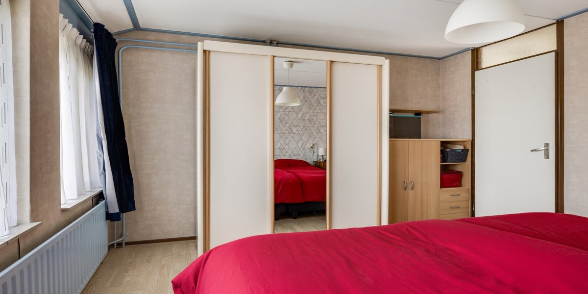 Eerste verdieping: Ruime overloop. Drie slaapkamers, waarvan één met een inloopkast en één met dubbele inbouwkasten.