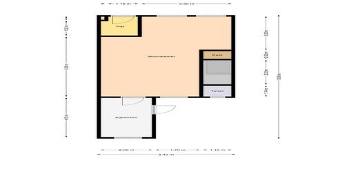 Indeling: hal/entree met een toilet en de trap naar de eerste verdieping. Woonkamer met half open keuken. De keuken is voorzien van een 4-pits kookplaat, een afzuigkap en een koelkast.
