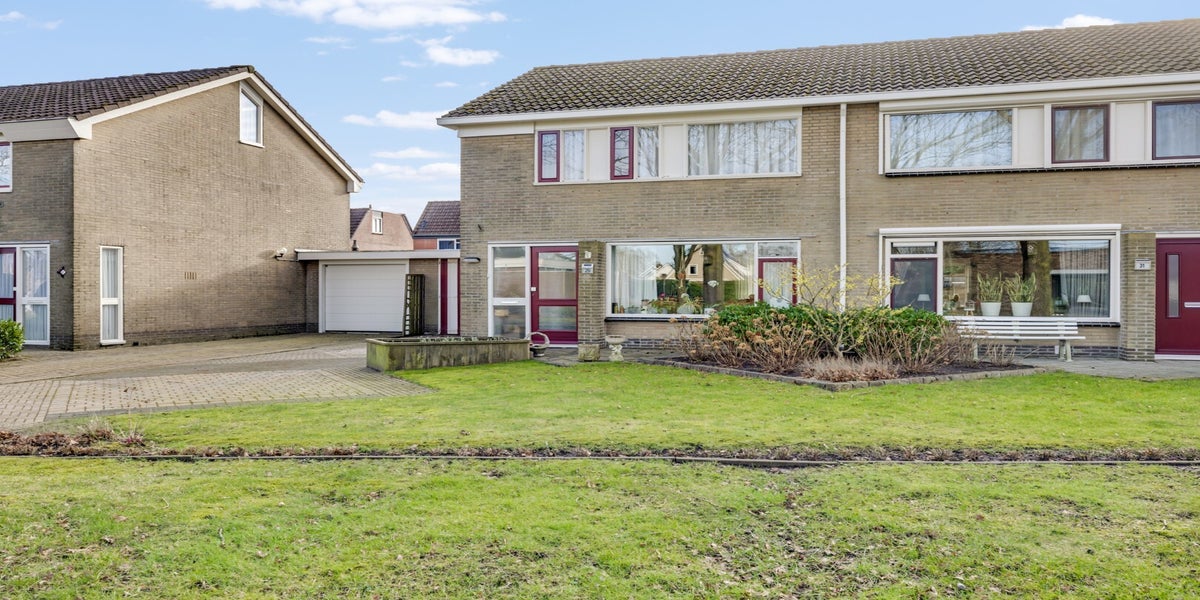 Op een mooie, ruime stand gelegen twee-onder-één kap woonhuis met een aangebouwde extra diepe garage. Deze woning staat aan een doorgaande weg door Buitenpost met veel openbaar groen.